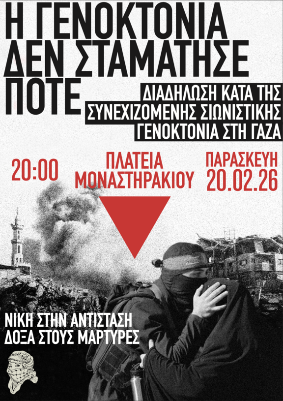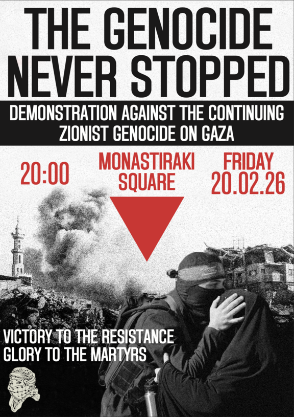 Καλούμε όλους τους ελεύθερους ανθρώπους να συγκεντρωθούν στην πλατεία Μοναστηρακίου την Παρασκευή 20 Φεβρουαρίου στις 8 μ.μ.