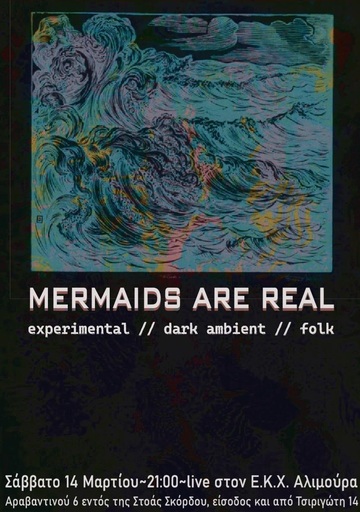 Οι Mermaids Are Real είναι η συνεργασία της Νίκης Δημητριάδη (φωνή, live-looping, fx) και του Selfish Limbs (αναλογικό συνθεσάιζερ, fx), με έδρα τη Θεσσαλονίκη. Η μουσική τους εξερευνά θεματικές όπως η μοναξιά, ο έρωτας και ο θάνατος. Τα σκοτεινά drone ηχοτοπία και οι ατμοφσαιρικές υφές συναντούν την αφήγηση, τα μοτίβα επανάληψης και τον αυτοσχεδιαμό για να δημιουργήσουν έναν κόσμο όπου μαγεία και πραγματικότητα δεν ξεχωρίζουν.