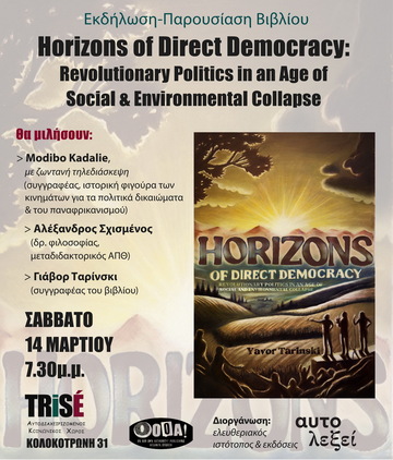 Σας καλούμε στην εκδήλωση-παρουσίαση του νέου βιβλίου "Horizons of Direct Democracy: Revolutionary Politics in an Age of Social and Environmental Collapse".