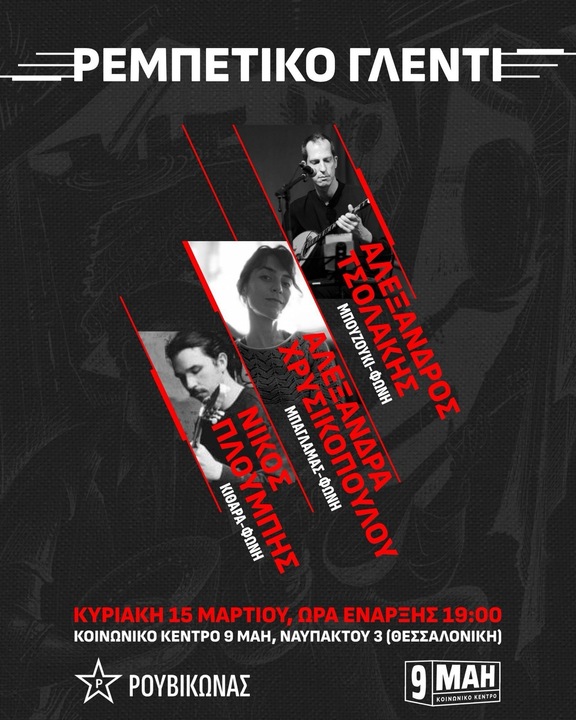 Ρεμπέτικο γλέντι, την Κυριακή 15 Μαρτίου στις 19:00, στο Κοινωνικό Κέντρο «9 Μάη»