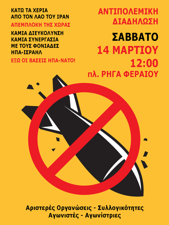 Κάλεσμα σε αντιπολεμική διαδήλωση Σάββατο 14/3