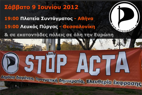 Το Σάββατο 9 Ιουνίου 2012, σε όλη την Ευρώπη & το κόσμο, σε εκατοντάδες πόλεις, οι πολίτες ενώνουν τις φωνές τους και λένε ΟΧΙ στην ACTA, την «εμπορική συμφωνία» που φτάνει σε λιγότερο από ένα μήνα στο Ευρωπαϊκό Κοινοβούλιο.