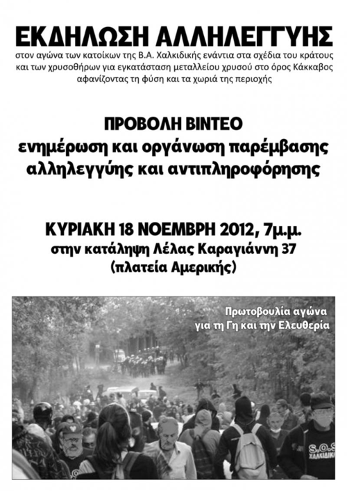 Προβολή βίντεο - ενημέρωση - διοργάνωση παρέμβασης αλληλεγγύης και αντιπληροφόρησης για τη ΒΑ Χαλκιδική