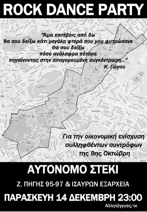Rock dance party αλληλεγγύης για συλληφθέντες συντρόφους της 9ης Οκτώβρη.