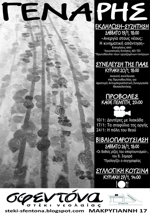 Τέλος, την Κυριακή 27/1, θα πραγματοποιηθεί συλλογική κουζίνα στο στέκι.