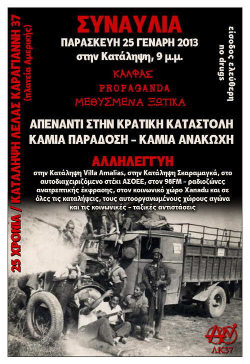 στην κατάληψη ΛΚ 37 - Παρασκευή 25 Γενάρη, 9 μ.μ.