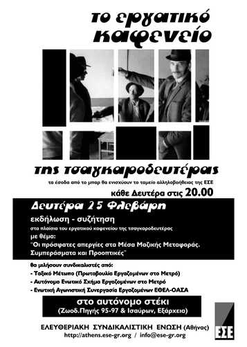 εκδήλωση - συζήτηση στα πλαίσια του εργατικού καφενείου της τσαγκαροδευτέρας