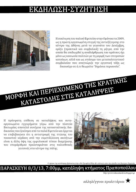 τι; : συζήτηση θεματική : καταστολή, κατάληψη από : Κατάληψη Κτήματος Πραποπούλου