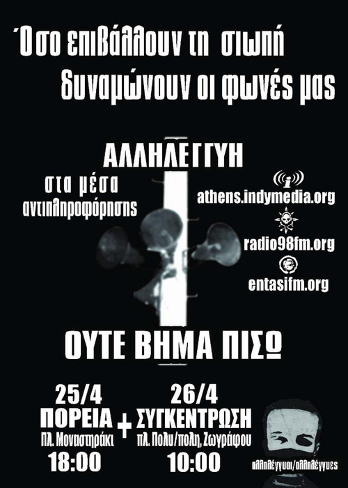 Πέμπτη 25.4.13, Μοναστηράκι 6μμ: Πορεία Αλληλεγγύης στο Athens Indymedia & τον 98 FM