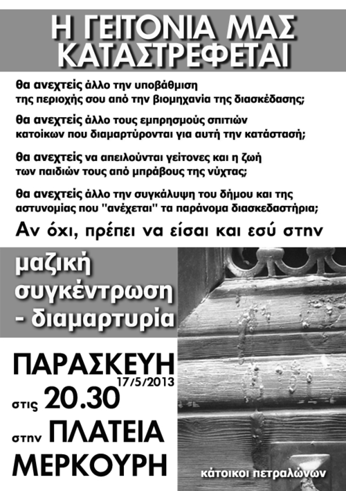 Θα προστατέψουμε τη γειτονιά μας απέναντι στα οικονομικά συμφέροντα που την απειλούν με καταστροφή.