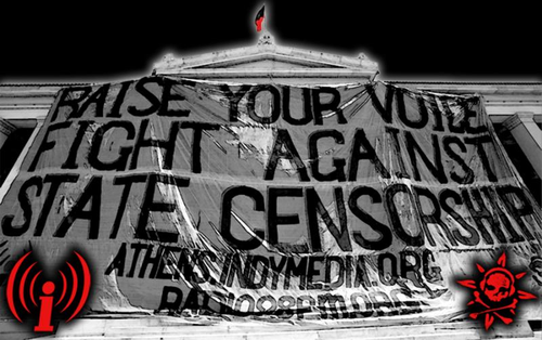 Συγκέντρωση Αλληλεγγύης για τους 6 συλληφθέντες από την παρέμβαση στα Προπύλαια (24/4/13) ενάντια στη φίμωση των μέσων αντιπληροφόρησης την Πέμπτη 20 Ιουνίου, στις 10.00 στα δικαστήρια της πρωήν σχολής Ευελπίδων