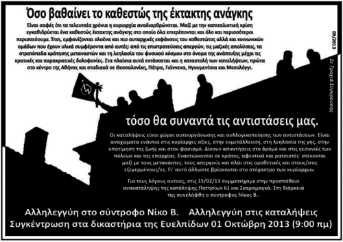 Δίκη του συντρόφου Νίκου Β. Κάλεσμα αλληλεγγύης στα δικαστήρια.