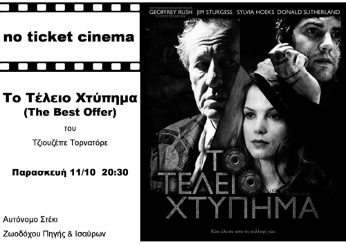 Την παρασκευή 11/10 στιθς 20.30 θα προβληθεί η ταινία του Τζιουζέπε Τορνατόρε "το τελευταίο χτύπημα"