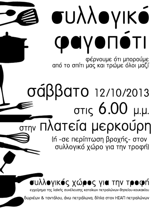 Φέρνουμε ότι μπορούμε από το σπίτι μας και τρώμε όλοι μαζί