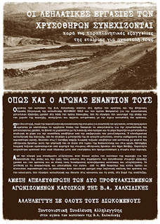 ΑΛΛΗΛΕΓΓΥΗ ΣΤΟΝ ΑΓΩΝΑ ΤΩΝ ΚΑΤΟΙΚΩΝ ΤΗΣ Β.Α. ΧΑΛΚΙΔΙΚΗΣ ΕΝΑΝΤΙΑ ΣΤΑ ΣΧΕΔΙΑ ΤΟΥ ΚΡΑΤΟΥΣ ΚΑΙ ΤΗΣ «ΕΛΛΗΝΙΚΟΣ ΧΡΥΣΟΣ» ΓΙΑ ΤΗΝ ΕΓΚΑΤΑΣΤΑΣΗ ΜΕΤΑΛΛΕΙΩΝ ΕΞΟΡΥΞΗΣ ΧΡΥΣΟΥ ΣΤΗΝ ΠΕΡΙΟΧΗ