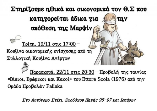 Στηρίζουμε ηθικά και οικονομικά τον Θ.Σ που κατηγορείται άδικα για την υπόθεση της Μαρφίν.
