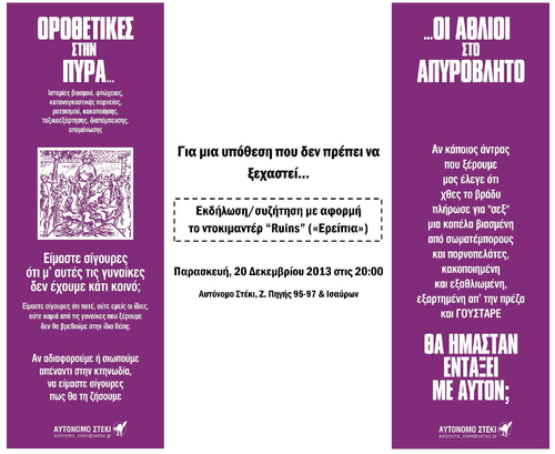 Εκδήλωση-συζήτηση με αφορμή το ντοκιμαντέρ “Ruins” (“Eρείπια”)