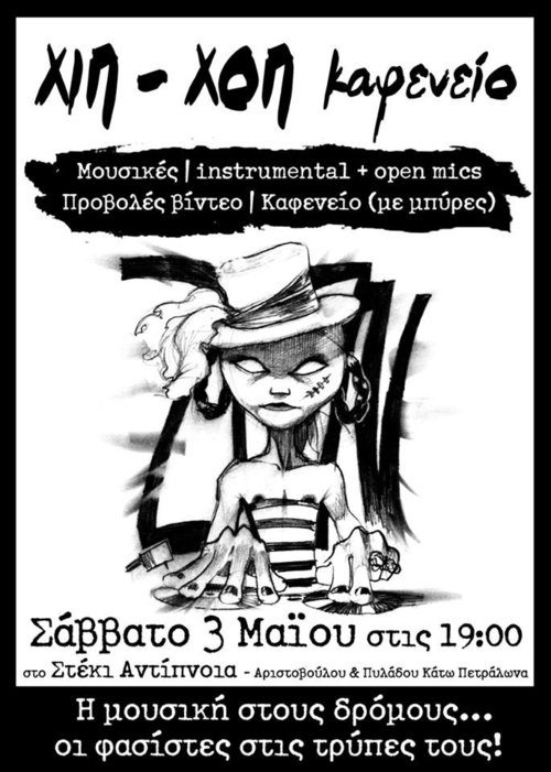 αναρχικό-αντιεξουσιαστικό στέκι Αντίπνοια Αριστοβούλου και Πυλάδου Κάτω Πετράλωνα 5' περπάτημα από ΗΣΑΠ Πετραλώνων λεωφορεία 049,815,914 - στάση ΕΛΟΥΛΟΥ