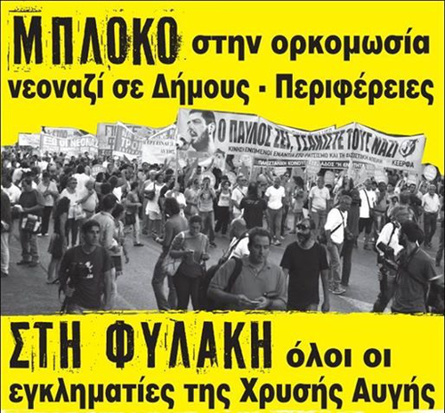 Καλούμε τις αριστερές και δημοκρατικές δημοτικές και περιφερειακές κινήσεις, τα συνδικάτα, τις κοινότητες μεταναστών, τους φοιτητικούς συλλόγους, τις κινήσεις υπεράσπισης δικαιωμάτων να δώσουν δυναμικό παρών στις αντιφασιστικές