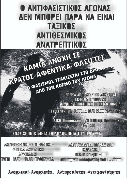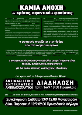 Εν όψει του δικαστηρίου για την επίθεση στο στέκι Αντίπνοια και τη συμπλήρωση ενός χρόνου από τη δολοφονία του Παύλου Φύσσα