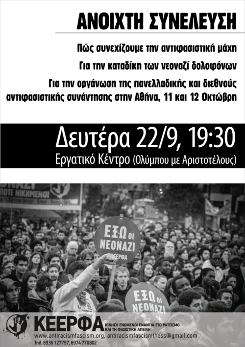 -Για την οργάνωση της πανελλαδικής και διεθνούς αντιφασιστικής συνάντησης στην Αθήνα, 11 και 12 Οκτώμβρη.