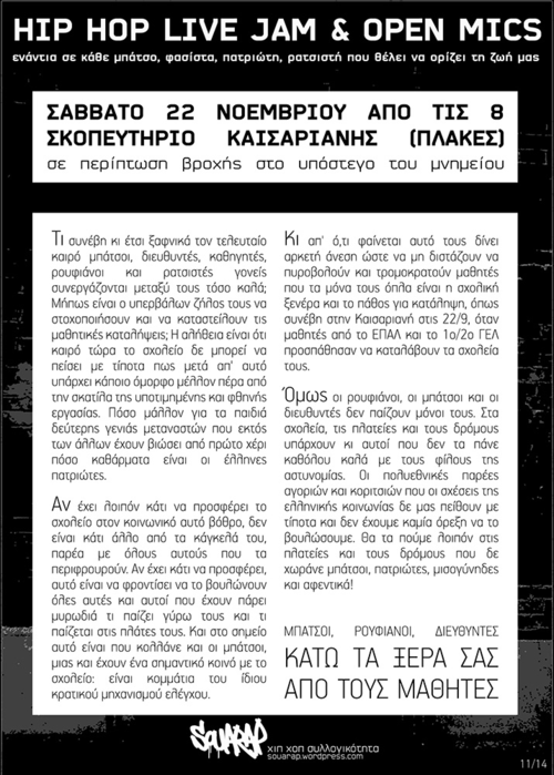 τι; : πάρτυ θεματική : καταστολή, ψυχαγωγία, αλληλεγγύη, μουσική, μαθητικό κίνημα από : souarap