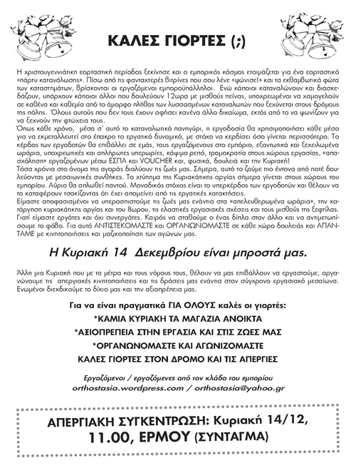 [Συντονιστικό δράσης] Κυριακή 14/12 :: Απεργία στον κλάδο του εμπορίου / συγκέντρωση: 11πμ, Ερμού (Σύνταγμα)