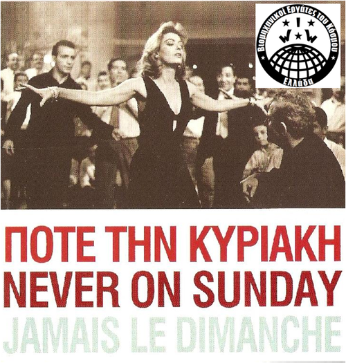 Άλλη μια Κυριακή που με τα μέτρα και τους νόμους τους, θέλουν να μας επιβάλλουν να εργαστούμε, οργανώνουμε τις απεργιακές κινητοποιήσεις και τις δράσεις μας ενάντια στον σύγχρονο εργασιακό μεσαίωνα. Ενωμένοι διεκδικούμε το δίκιο μας και την αξιοπρέπεια μας.