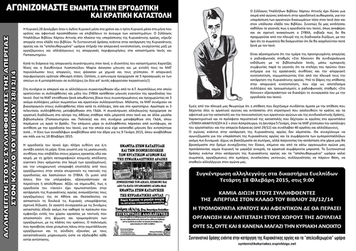 ΤΗΣ ΑΠΕΡΓΙΑΣ ΣΤΟΝ ΚΛΑΔΟ ΤΟΥ ΒΙΒΛΙΟΥ 28/12/14
