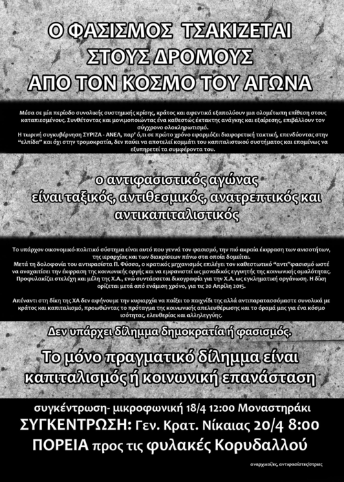 -18/4 Συγκέντρωση-Μικροφωνική στο Μοναστηράκι στις 12 η ώρα