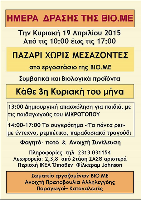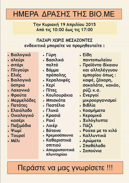 Ημέρα Δράσης και παζάρι στη ΒΙΟΜΕ Κυριακή 19/4 από τις 10 εως τις 5 το απόγευμα