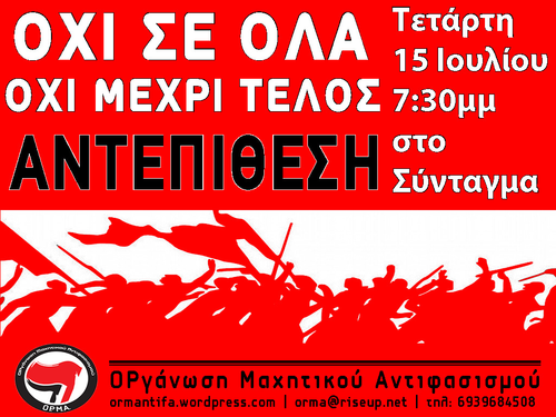 ΟΧΙ στο νέο μνημόνιο. Τετάρτη 15/7 Όλοι/ες στη συγκέντρωση στο Σύνταγμα στις 19:00