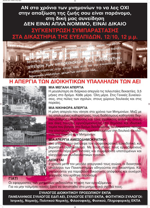 Συγκέντρωση για δίκη απεργών ΑΕΙ, 12.00, δικαστήρια Ευελπίδων, κτήριο προκάτ.