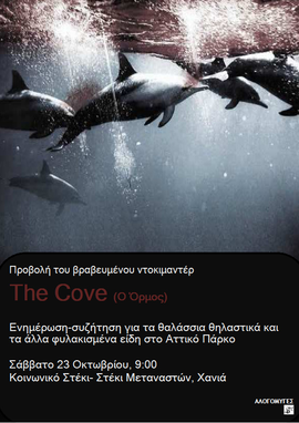 Προβολή του ντοκιμαντέρ The Cove & Ενημέρωση-συζήτηση για τα θαλάσσια θηλαστικά και τα άλλα φυλακισμένα είδη στο Αττικό Πάρκο