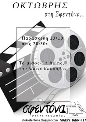 Την Παρασκευή 23/10 στις 20:30 η Κινηματογραφική Ομάδα της Σφεντόνας παρουσιάζει