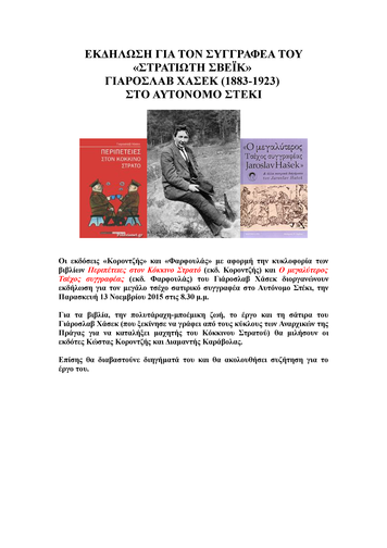 Εκδήλωση για το συγγραφέα του «Στρατιώτη Σβέικ»