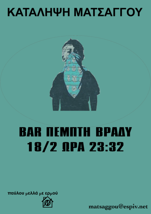 επικοινωνία : http://matsaggou.squat.gr/πηγή : email που λάβαμε στις 17 Φεβρουάριος 14h