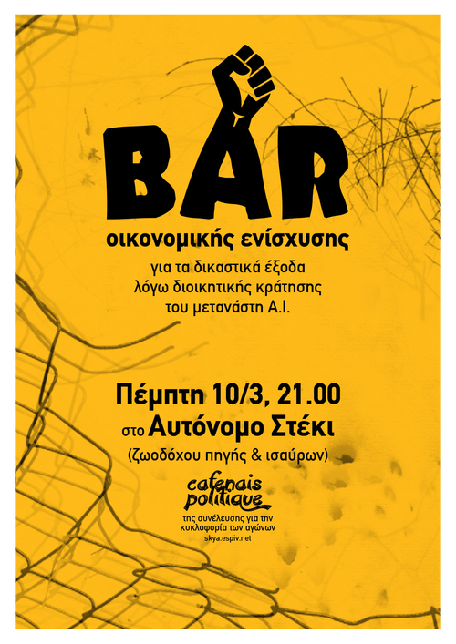 Στα πλαίσια της νομικής και πολιτικής στήριξης των κρατουμένων κάνουμε αυτό το καφενείο οικονομικής ενίσχυσης για τα δικαστικά έξοδα του κρατούμενου Α.Ι.