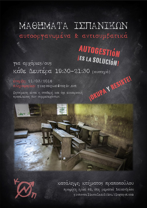 Τη Δευτέρα 21/3 ξεκινάνε (εκ νέου) ελεύθερα Μαθήματα Ισπανικών για αρχάριες/ους στο χώρο της κατάληψης.