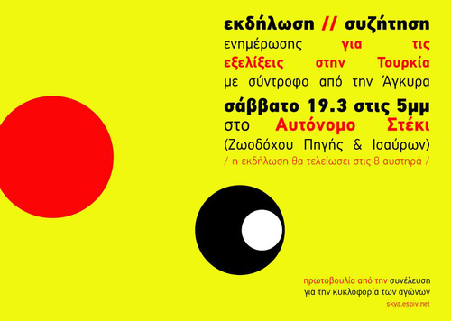 Εκδήλωση / Συζήτηση ενημέρωσης για τις εξελίξεις στην Τουρκία με σύντροφο από την Άγκυρα