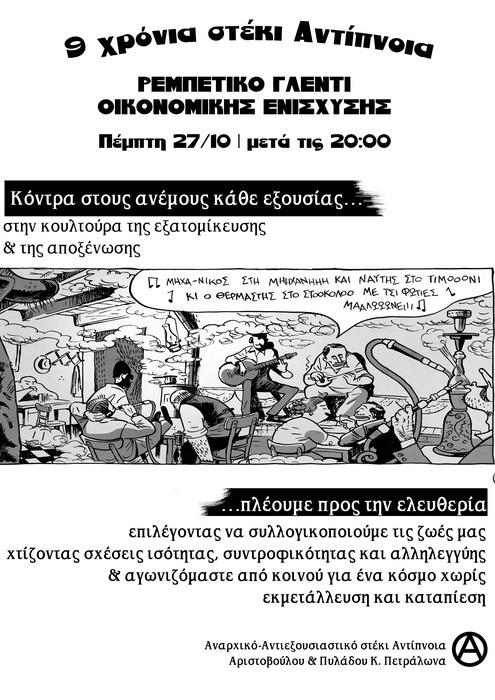 Ρεμπέτικο γλέντι οικονομικής ενίσχυσης του στεκιού Αντίπνοια, με τη ''Λαική οργή''.