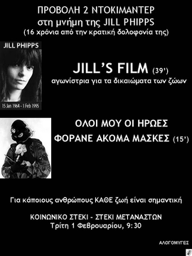 Προβολή 2 ντοκιμαντέρ στη μνήμη της Jill Phipps