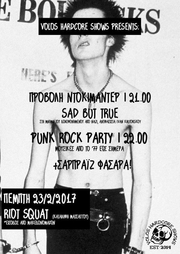 21.00 Προβολή ντοκυμαντέρ SAD BUT TRUE, στην μνήμη του δολοφονημένου από ναζί αντιφασίστα Ivan Khuturskoy