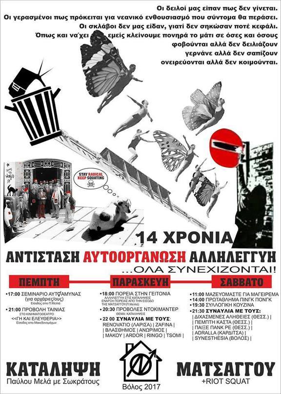 3ήμερο από Πέμπτη ως Σάββατο για τα 14 χρόνια της κατάληψης Ματσάγγου.