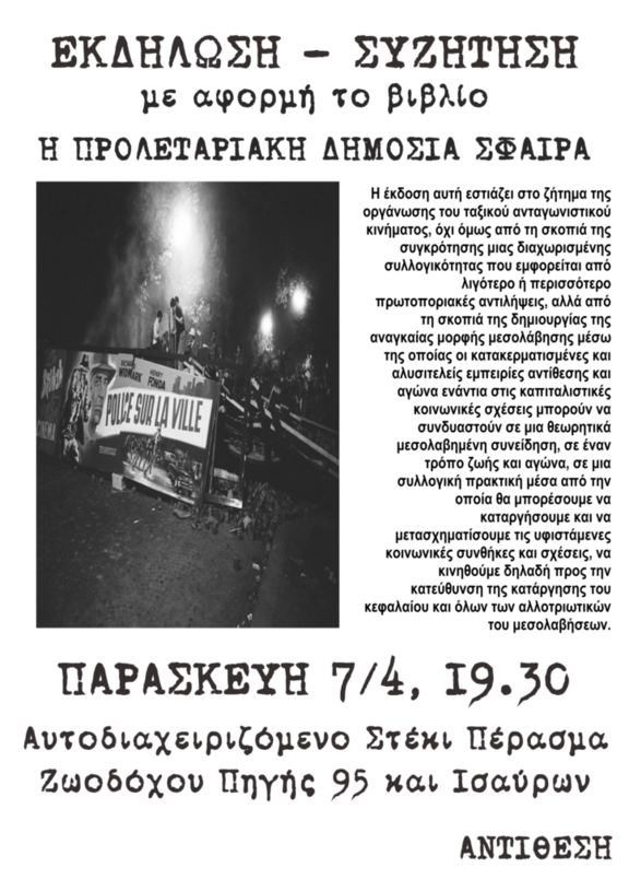 Εκδήλωση-συζήτηση με αφορμή το βιβλίο "Η προλεταριακή δημόσια σφαίρα"