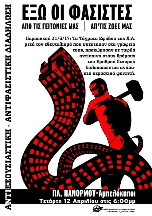 Αντιεξουσιαστική - Αντιφασιστική Διαδήλωση: Τετάρτη 12 Απρίλη, 18.00 πλ. Πανόρμου (Αμπελόκηποι)