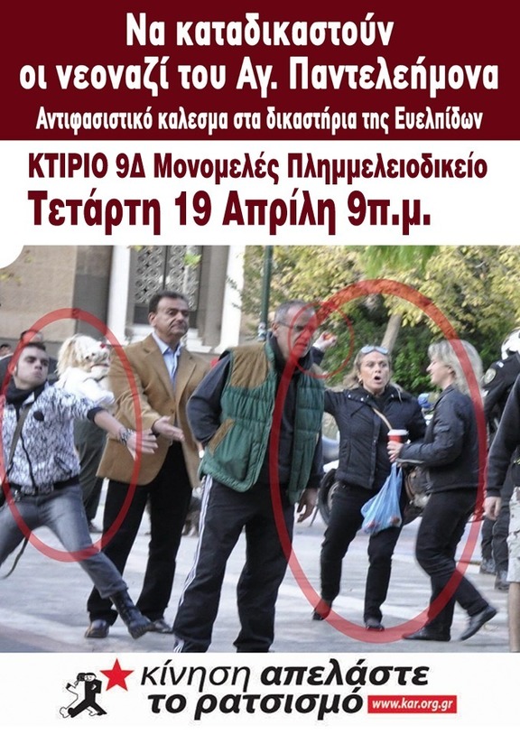 Αντιφασιστικό κάλεσμα στη δίκη των νεοναζί του Αγ.Παντελεήμονα