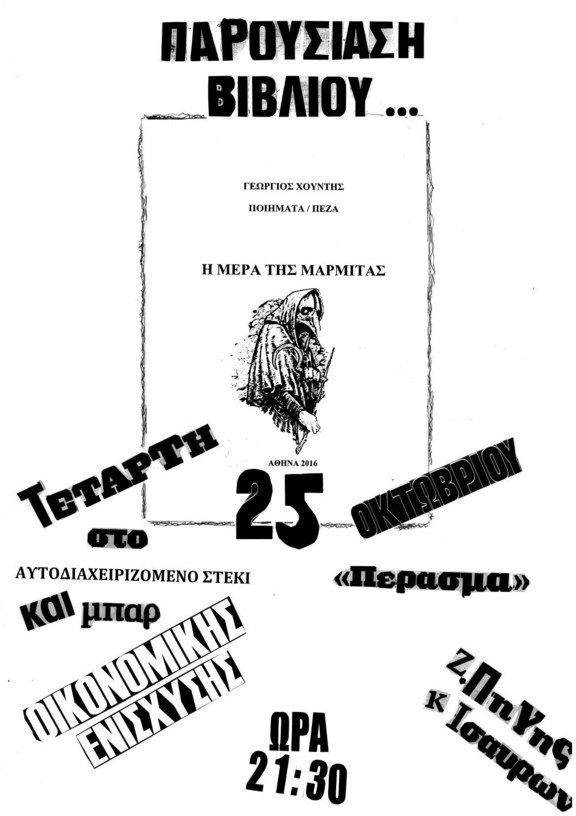 Παρουσίαση του βιβλίου "Η μέρα της μαρμίτας" & bar οικονομικής ενίσχυσης