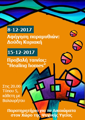 Το Παρατηρητήριο για τα Δικαιώματα στον Χώρο της Ψυχικής Υγείας προβάλλει ένα ντοκιμαντέρ που καταγράφει τη δουλειά της Οργάνωσης "Οικογενειακή Φροντίδα" στο Γκέτεμποργκ της Σουηδίας - ένα πρόγραμμα, το οποίο στην εποχή των φαρμακευτικών κοκτέιλ και των ψυχιατρικών διαγνώσεων διά βίου, βοηθά τους ανθρώπους να θεραπευτούν από την ψύχωση χωρίς φάρμακα.