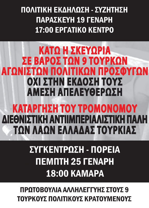 Πολιτική εκδήλωση αλληλεγγύης στους 9 αγωνιστές απ' την Τουρκία